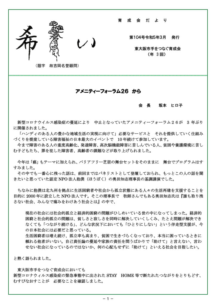 その後、活動は各都道府県や市町村に広がりました。東大阪市手をつなぐ育成会も、全国の育成会とつながって活動しています。