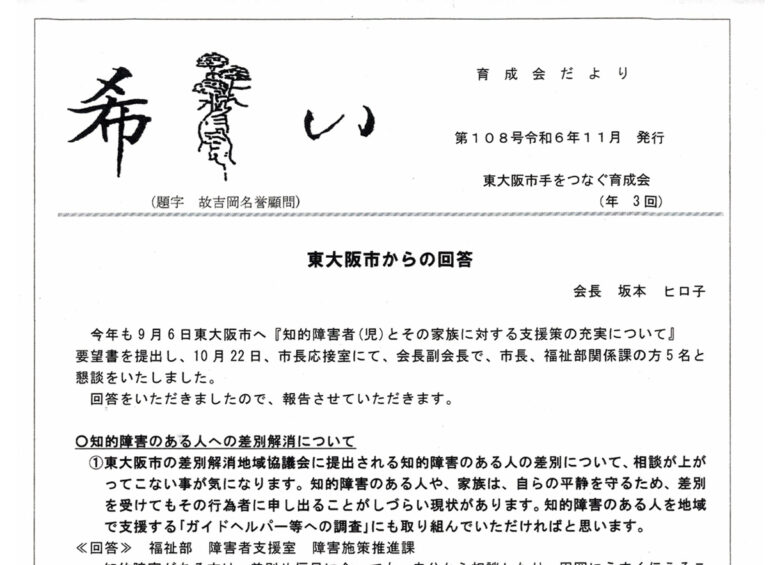 2024年(令和6年)3月、機関紙「希い(ねがい)」第106号を発行しました。